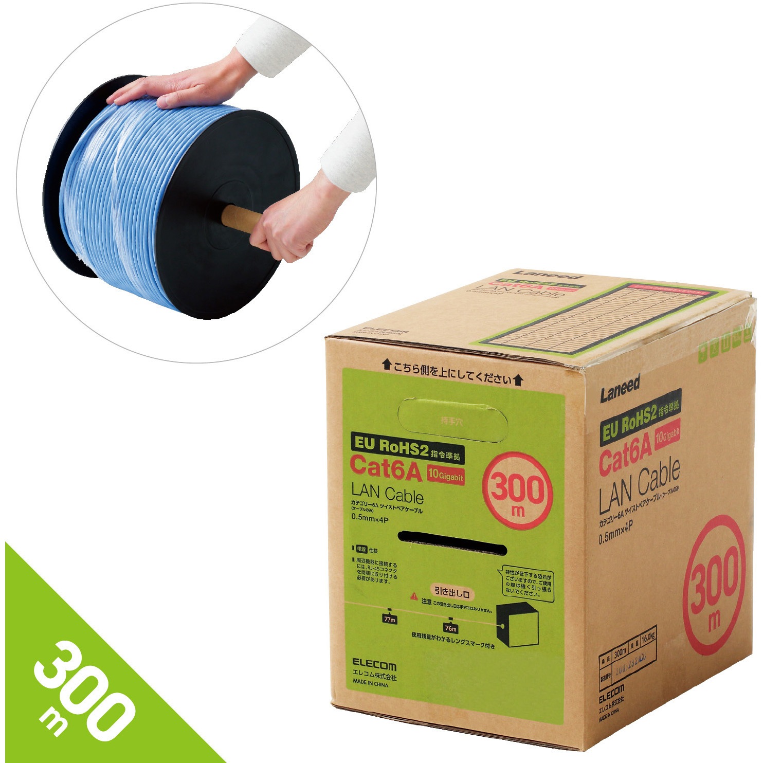 Ld Gpal Bu300rs Lanケーブル Cat6a 300m ギガビット 単線 コネクタ無 段ボール箱 ドラム Rohs 1個 エレコム 通販サイトmonotaro